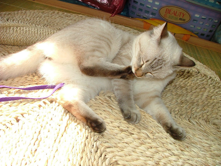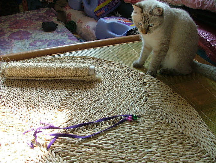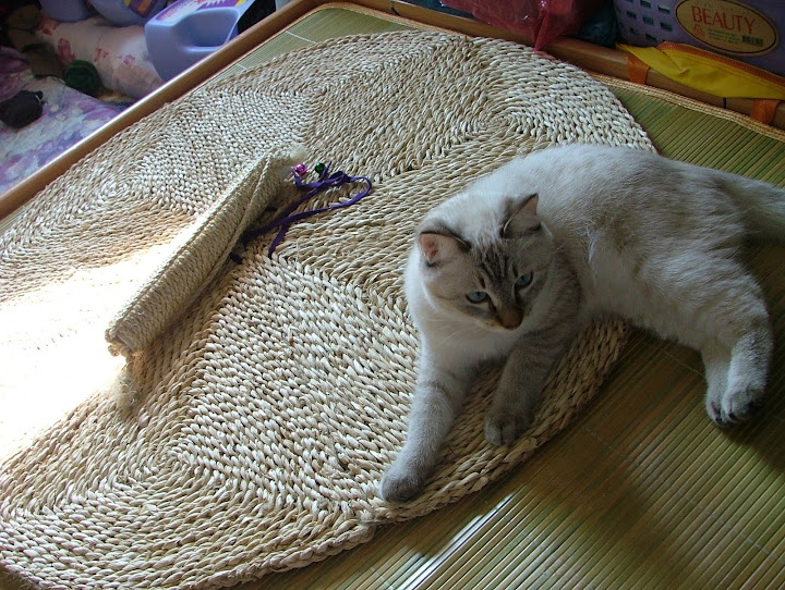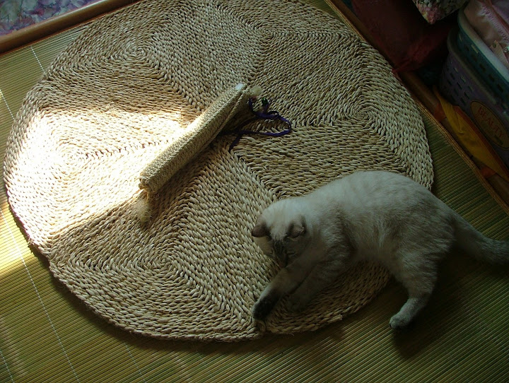 今天至大潤發買的大地墊... 昨天無意中看到有喵友買了一款 超大的地墊.... 可以讓喵喵玩.... 抓抓手 ... 挺好的... 也不貴 .... 因為昨天有事外出.... 今天想起才去找找...... 起先還沒找到哦.... 以為是中和的另一家才有賣.... 突然想到.. 可能不是放在竉物區 ( 其實也很少東西 .. 小小一區啦... ) 嗯.... 果然.... 放在一般毛巾家用地墊區啦..... 比一般的尺寸大哦.... 是近圓型... 籐編的.. $99一片.... 管它好不好就買回家了..... 啊... 請問一下 這位努努小姐妮是買單嗎 ....???? 幹嘛跟偶搶咧....??? http://lh4.ggpht.com/_c27Ju7TYtb8/SY_WsUjnZ0I/AAAAAAAACXQ/e1PEHQG54Dg/s720/DSCF1983.JPG 貨號.... 品名.... 有興趣的路人可以參考一下囉..... 九十九塊大洋啦.... 在賣場是折一半放的哦..... http://lh5.ggpht.com/_c27Ju7TYtb8/SY_WvPXVUZI/AAAAAAAACXY/h5596ovlcoI/s720/DSCF1991.JPG 起先努努趴在一邊看看.... http://lh5.ggpht.com/_c27Ju7TYtb8/SY_Wgphz8YI/AAAAAAAACWs/9zlGyDmXZA8/s720/DSCF1952.JPG 後來靠近一點看 .... 哦.... 邊上那根是偶自己繞的不是贈品 .... 綁袋也是弄上去分正反面用的... 順便弄個小鈴鐺讓牠玩啦.... http://lh5.ggpht.com/_c27Ju7TYtb8/SY_WpWeoLxI/AAAAAAAACXI/J440TWf1sI8/s720/DSCF1966.JPG 今天天氣真是好.... 太陽好大呀.... 努努也在曬太陽咧.... http://lh3.ggpht.com/_c27Ju7TYtb8/SY_WbKzfPhI/AAAAAAAACWY/volopkZrN0k/s720/DSCF1933.JPG 折疊手... 聽說是喵喵舒服的姿式哦... 偶覺得四脚朝天才最思胡呀 .... http://lh3.ggpht.com/_c27Ju7TYtb8/SY_Wd-OwwmI/AAAAAAAACWk/hcCIjoOq4qA/s720/DSCF1935.JPG
