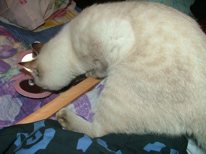 [這篇文章最後由nunu20080623在 2009/02/10 12:49pm 編輯] 呵呵... 算算日子.... 偶們和努努過了一個 ... 寒 ~ 暑 去年小姐姐放暑假前幾天遇到努努.... 明天小姐姐放完寒假要開學啦..... 一個寒暑 .... 話說 ...... 偶在去年帶偶家的幾位小朋友 去SOGO吃韓式的石鍋拌飯 ... 飯後太飽了散步閒逛 無意中在東區捷運地下街看到的... 努努的馬麻 .. 偶 雖沒用鏡子的習慣... 也被那碎花給吸住了... 回家後也都沒在用... 放枕頭邊... 就是努努會來察看察看 .... 聞聞手機... 水美媒 ... 薄荷棒 ... 啊牠 .... 反正都碰到了 ... 就送給牠好了.... ( 連小姐姐都沒想送吔... ) http://lh3.ggpht.com/_c27Ju7TYtb8/SZCADN9aFMI/AAAAAAAACcE/dWhiKInMSNI/s512/DSCF1459.JPG 撥弄... http://lh4.ggpht.com/_c27Ju7TYtb8/SZCALMhnLaI/AAAAAAAACc8/Rs2G6N0n2t0/s720/DSCF1479.JPG 好奇寶寶........ http://lh4.ggpht.com/_c27Ju7TYtb8/SZCAPtZl0WI/AAAAAAAACdg/xOlkMu26LuA/s720/DSCF1489.JPG 然後 ... 偶 .... 就打開給妮小喵瞧瞧.... 看看妮自己長的 ~啥樣 ... 不知會有何反應....???? 每天 只看到偶和喵爸還有小姐姐 .....