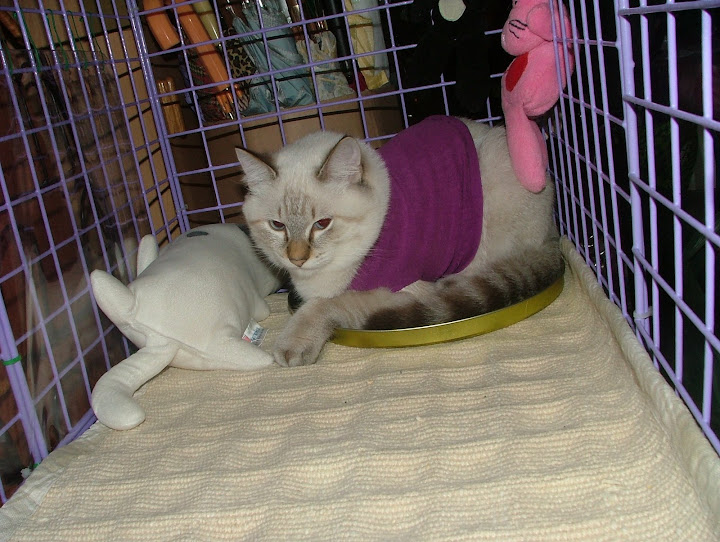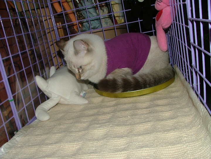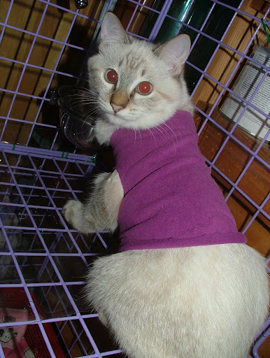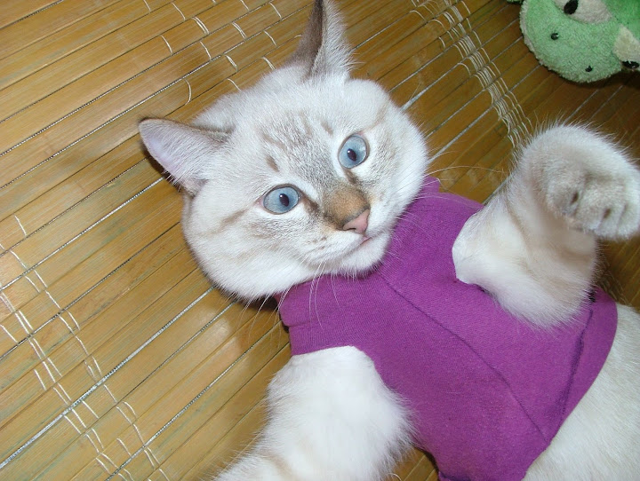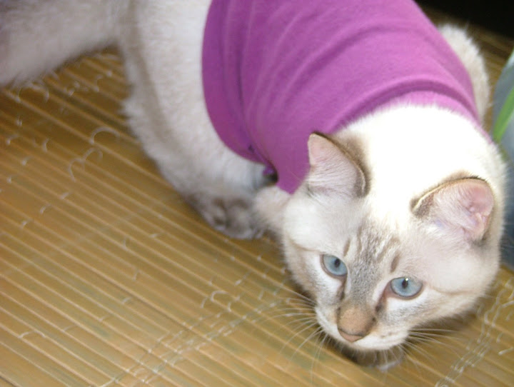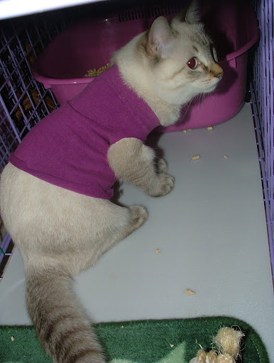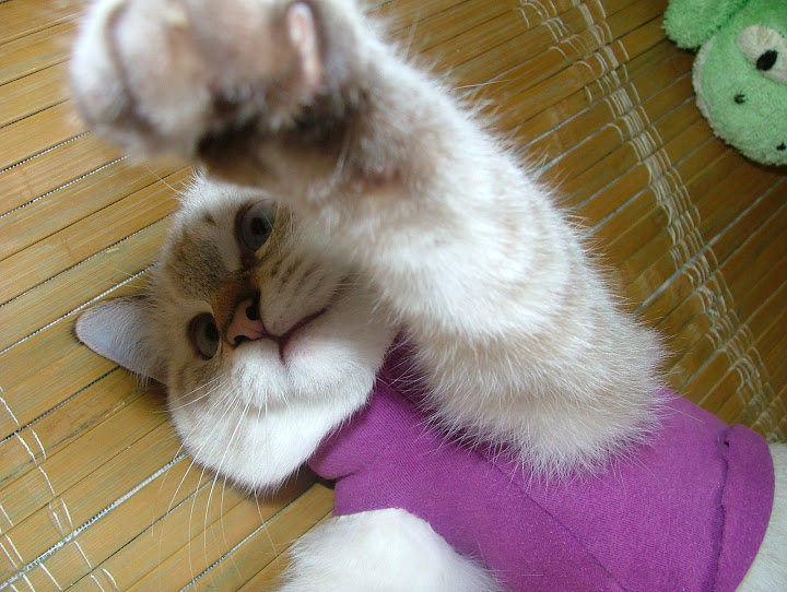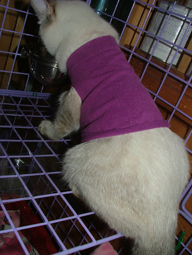 昨天幫努努買的第一件衣衣.... 想說回家看看 .... 也許可以自己做一件吧... 結果 ... 還是大了點.... 3公斤以內可以.... 努努應該有2公斤吧... 手那邊有點寛.... 一定會掙脫掉的... 身長也不夠.... 可能要再加一點布啦... 那件可能是給像吉娃娃 ... 博美類的小型犬穿的喔... 怕牠會冷... 衣服不穿..... 弄了條地墊加給牠鑽.... 七早八早 .... 近6點吧.... 努努一直叫叫叫... 天冷 ... 又早... 實在不想起床吔... 但又怕牠有什麼事 ....( 若只是想抱抱吸手倒還好....) 起來牠就被偶抱出來... 吸手啦... 沒看到牠到底睡哪一層樓 .... 碗空空的.... 補充些吃的囉..... 看牠在偶臂彎中吸個不停 ... 又滾了鍋稀飯的.... 弄到七點才讓牠回去 ... 又丟個抱枕給牠.... 看人家喵都會趴在抱枕上... 牠好像沒啥興趣的... 偶嘛 .... 氣管不太好... 有點乾乾的.... 猛喝熱水.... 千萬別感冒了.... 也要很小心別靠努努太近 .... 很怕牠被傳染啦.... ( 牠說的話不清不此的 .. 弄不清牠哪兒不舒服嘛...) 還是小心點啦.... 新手還是新手 .... 雖然是近五個月的喵... 可還是小喵嘛 ..... 偶還挺怕的.... 操心這操心那..... 喔呵呵 .... 昨天在寶雅又看到點點窩 ... 居然有一個藍色 .... 我先前一直想要的顏色啦.... 好心動.... 很想抱回家... 但紅色也才買不久 ... 家中只有一隻努努呀.... 而且... 牠還沒在�面睡著過吔... 只是跳進跳出的玩過.... 真不知買回來是牠用 ....? 還是偶要用吶 ??? 先暫時打住... 沒有抱回家.... 不過... 既然現在在這兒一直講.... 早上也跟喵爸聊努努的事提到.... 偶怕.... 可能.... 應該這二天會去抱回家吧... ( 會不會浪費呀... ??? ) 不買回家.... 浪費偶的心思在那兒上 .. 總是想能省一點買牠必需品啦.... 昨天就又去搬了一包木屑砂回來 .... 外加一件小衣衣..... 照片照片... 說了半天忘了還沒放上來看看啦..... http://lh6.ggpht.com/_alupsZG7TVw/SRoXYXxyGXI/AAAAAAAADCA/mtv0n_P9p80/s512/DSCF5826.JPG 偶一直以為拉鍊會開在肚子上的.... 因為在中和環球 ... 不是開了一家 pet plus ( 有沒拼錯呀 ...???) �面的衣衣起跳價是600 左右吧... 印象中好像都是開肚子那邊的啦..... 先前是偶和小姐姐一起穿的... 順勢抱著牠拍了幾張.... 牠不情不願的哦.... 可能偶還沒洗... 味道不對牠的味.... 不看鏡頭 .... http://lh4.ggpht.com/_alupsZG7TVw/SRoXcYPYwuI/AAAAAAAADCI/EdsK_8r6IQQ/s512/DSCF5828.JPG 哇.... 這樣子看不到衣服啦... (要拍衣就拍衣 .... 幹嘛叫我穿咧.... 主角是隨呀....???) http://lh5.ggpht.com/_alupsZG7TVw/SRoXQy0_0mI/AAAAAAAADBs/k9jXUFqraI0/s512/DSCF5822.JPG 對嘛 .... 對嘛... 照過來 .... 照過來呀..... http://lh4.ggpht.com/_alupsZG7TVw/SRoXVCr9c7I/AAAAAAAADB0/HE-1-b5IlGM/s512/DSCF5823.JPG 掙扎之下.... 只好放牠下去.... 牠一直扯 .... 一直動.... http://lh6.ggpht.com/_alupsZG7TVw/SRoXgMavPTI/AAAAAAAADCQ/V0c_5oSyZN4/s512/DSCF5829.JPG 還以為不一直穿著也可以穿一下下... 拍拍照呀什麼的 .... 至少也會站好嘛..... http://lh5.ggpht.com/_alupsZG7TVw/SRoXkKsC1PI/AAAAAAAADCY/hnVlum66Xkk/s720/DSCF5830.JPG 打成一團.... 一圫 ..... http://lh5.ggpht.com/_alupsZG7TVw/SRoXo3fL89I/AAAAAAAADCk/D1v5VIZWYM4/s720/DSCF5831.JPG 買時... 竉物店老闆也說.. .... 狗比較穿得住.... 喵喵不太願意穿... 而且... 是針對狗做的衣衣.... 喵喵只是體型小也可以穿啦..... 骨頭軟... 很容易掙脫的啦.... 果不其然.... http://lh5.ggpht.com/_alupsZG7TVw/SRoXsW-JM9I/AAAAAAAADCs/PTY5cY86PB4/s720/DSCF5832.JPG 努努好屌 .... http://lh3.ggpht.com/_alupsZG7TVw/SRoXwuNiKOI/AAAAAAAADC0/vPB8UvwqKPc/s720/DSCF5840.JPG 不穿就算了.... 不冷是吧..... 還咬..... 還咬...... http://lh4.ggpht.com/_alupsZG7TVw/SRoX0mi3L0I/AAAAAAAADC8/VhbRo1c3E9M/s720/DSCF5842.JPG