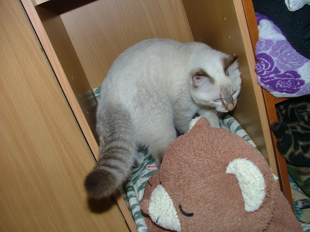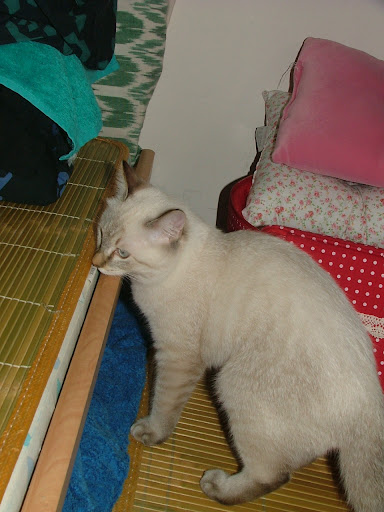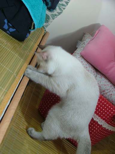 白天 ... 除了努努要睡覺吃東西外... 幾乎都讓牠到床上玩了.... 沒事做也讓牠閒晃的.... 放心... 牠不會睡著... 牠也不會無聊啦... 因為牠超會找事事做的.... . 再不然... 牠也會停在離偶們任一人最近的地方..... 伺機而動 ..... 牠自己跑去昨天弄好的櫃子去.... 偶很想牠在那邊睡覺的啦..... 可是牠都待不久的啦.... 整張床滿場飛啊..... http://lh5.ggpht.com/_alupsZG7TVw/SRa9JGSmrKI/AAAAAAAACoY/htqhJm8b-ms/s720/DSCF4603.JPG 底下有一些東西還沒全清空啦..... 所以有點厚度.... 正好當墊子 ... 不會太硬啦... http://lh5.ggpht.com/_alupsZG7TVw/SRa9ai9sUMI/AAAAAAAACog/JRsicqzMtlI/s720/DSCF4604.JPG 站起來也不費頂到頭啦.... http://lh3.ggpht.com/_alupsZG7TVw/SRa9kkVayyI/AAAAAAAACoo/_TlgwFbFAMI/s512/DSCF4605.JPG 算算日子.... 再一週又要去打第二劑的預防針啦.... 偶又要挫著等囉.... 這回不知是打三合一呢.... 還是直接打五合一了呢..... 要再問一下醫生啦..... http://lh5.ggpht.com/_alupsZG7TVw/SRa9pYUZFmI/AAAAAAAACow/rdIVMvri_jI/s512/DSCF4606.JPG 小姐姐幫牠加一條毛巾擋著點.... 有點安全感 .... http://lh3.ggpht.com/_alupsZG7TVw/SRa9qgvq9MI/AAAAAAAACo4/LzuFAH7kCk4/s512/DSCF4607.JPG 其實牠還蠻聰明的喲.... 小時笨笨的... 沒常出來跑 ... 就算出來也怕怕的.... 現在可不同了.... 沒讓牠出來還要吵吵吵.... 像在說話一樣.... 有時拉的長聲 .... 很難形容那種長音吔 .... 大家都會一直笑牠.... 呵呵呵... 牠就逹到目的了..... 比偶們待在那床上的時間還要久咧.... http://lh4.ggpht.com/_alupsZG7TVw/SRa9r0HyZGI/AAAAAAAACpA/yU8mv9DOmw0/s512/DSCF4608.JPG 哇咧..... 到底是隨的床呀..... ??? http://lh3.ggpht.com/_alupsZG7TVw/SRa9uAscL9I/AAAAAAAACpI/whvKYLMysXk/s512/DSCF4609.JPG 說到床... 牠有三層樓可以睡啦.... 有時見牠在三樓... 有時又在二樓... 一樓是那個籃子.... 不知牠為何選不同樓層睡喔.... 偶是說牠不知是依據什麼情況而決定的啦...??? 哈... 很無聊吧.... 偶.... 好奇啦.... http://lh6.ggpht.com/_alupsZG7TVw/SRa9v00EVeI/AAAAAAAACpQ/NCtR7AZa6Mo/s512/DSCF4610.JPG 呵呵.... 有點躲起來了呢... http://lh3.ggpht.com/_alupsZG7TVw/SRa9xpGut_I/AAAAAAAACpY/JUo-FFbAULk/s512/DSCF4611.JPG 上午... 趁喵爸在抱牠時.... 要小姐姐分散牠注意..力.... 偶偷修牠的尖指甲.... 不然 .. 連抱牠時都會被勾傷 .... 連指甲都長那麼快 ... 好羡慕家有乖乖修指甲的喵爸喵媽哦.... 聽說 .... 只要罐頭打發就好了唷 ...??? 可是偶家努努一直不吃罐罐吔.... 偶開過四罐 .... 牠都聞一聞.... 要不吃個二口就沒興趣的樣子囉.... 好吧... 錢省下來囉.... 不吃零食也好啦.... 光吃正餐就 ..... 太重了.... http://lh6.ggpht.com/_alupsZG7TVw/SRa9zPmHQvI/AAAAAAAACpg/ViPDJ4Mj1AM/s512/DSCF4612.JPG 好在也有看到不愛吃罐罐的喵... 要不然偶又要煩惱牠不知又怎麼不對了呢.... http://lh3.ggpht.com/_alupsZG7TVw/SRa91O6YolI/AAAAAAAACpo/gmNsO9uN1ms/s512/DSCF4613.JPG 這邊牠好像並不太喜歡待的樣子啦... 又要轉身跑走了呀.... http://lh4.ggpht.com/_alupsZG7TVw/SRa95RN0OVI/AAAAAAAACp8/9fOoNHnn2jA/s512/DSCF4616.JPG