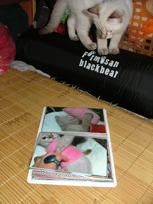 [這篇文章最後由nunu20080623在 2008/09/28 01:16pm 編輯] 努努玩背包帶子 ... http://lh5.ggpht.com/NuNu20080623/SN8HWlY3gwI/AAAAAAAACGo/Hibaj_-qDNg/s512/DSCF9355.JPG http://lh3.ggpht.com/NuNu20080623/SN8HaIiXU0I/AAAAAAAACGw/U-nHJVOBYX4/s512/DSCF9357.JPG http://lh6.ggpht.com/NuNu20080623/SN8Hd_DLLpI/AAAAAAAACG4/n3zXbmCM410/s512/DSCF9358.JPG http://lh3.ggpht.com/NuNu20080623/SN8HhmkFtgI/AAAAAAAACHA/cTET8dquMko/s512/DSCF9359.JPG http://lh6.ggpht.com/NuNu20080623/SN8HlL4m1cI/AAAAAAAACHM/XpJXs7oSJus/s512/DSCF9360.JPG http://lh6.ggpht.com/NuNu20080623/SN8HrhVAzqI/AAAAAAAACHc/QXfNeYGn4Xo/s512/DSCF9387.JPG http://lh3.ggpht.com/NuNu20080623/SN8HoZNSVTI/AAAAAAAACHU/tl-DQPSUxN8/s512/DSCF9361.JPG ........................... 昨天... 去買努努的木屑砂 ... 順道去醫院問了一下醫生 有關努努準備打預防針的相關事情 本想直接帶努努去啦... 但有風雨.. 不太方便 ... 就先口頭問一問吧.... 我們猜想努努應該過了一公斤重了吧... 可以符合打預防針的限制體重... 因為努努回家後一直沒有再驅蟲和噴蚤不到 ... 所以下回要看診時先驗一下便便 ... 醫生是說 小小喵第一次最好是打三合一啦... 等一個月後要打第二劑時... 因第一劑有了抗體後... 那時再改打五合一 .. 這樣牠的反應比較不會很大不適應啦 哦... 原來如此呀... 希望牠可別有什麼不適才好 .... 買木屑砂時看到店中原有的一隻小摺耳喵 不知何時已被買走了 可是牠媽媽還在那邊 ... 另一邊有一隻喵媽媽 帶著四隻小小喵.. 應該還不到一個月吧... 只有一隻明顯一點摺耳啦.... 其實那隻媽也不太像正統的摺耳.. 反而有點像玳瑁耶... 我不懂 .. 也看沒有... 只是環境不太好... 便便堆滿砂盆了... 還有果蠅吔.... 問了老闆 ... 上回那隻約三個多月的賣多少 她說8000∼12000吧 ... 這些不到一個月的也是一樣的價錢 .. 所以大小都一樣 .. 真是奇怪了... 怎會有人來買喔 ??? 也許啦.... 偏好此種喵喵吧... 外面撿不太到 ... 小喵好可憐呀.... 都不知何時被賣掉 老闆數錢數的可開心了咧...但怎不好好把喵照顧好咧 ??? 反正那家呀... 好像都是要賣的喵吧 .. 有二隻藍喵都已看了幾個月了 還在那邊啊 !!!