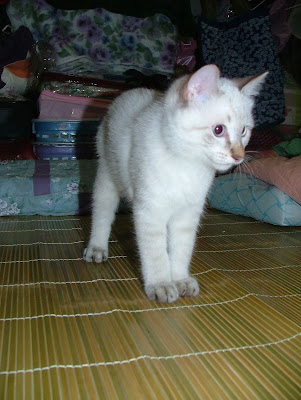 唉唷... 偶第一次 .... 也沒料想到 ... 原來小喵喵的 嗷嗷待哺 期 會那麼快就過完了喲 ? 畢竟三個月對偶們來說是很快呀..... 一個漫長的暑假 .. 加上開學一個月 ... 喔 .. .... 是該高興 ? .. 還是 有點 ... 意猶未盡 ??? 牠和偶在別的地方看到的同年紀小喵比 ... 還是有小一點點啦... 體型身長都小半號呀.... 不知現在這模樣.... 就定型了嗎 ??? 不過 .... 偶都喜歡啦... 牠還是天天要吸吸 ... 天天要咬咬 ... 這二三天.... 天天早上八點左右叫叫叫 叫大家起床呀.... 昨天八點八分 .. 今天八點十六分 ..... 牠也會倍數增加唷 ??? 哈哈 ...